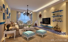 淺槽邊的膠白漆處理過的天花加上復(fù)古風(fēng)的吊燈,淺色的電視背景墻搭上幾個簡易的單邊裝飾架,馬賽克裝修的電視柜更好地體現(xiàn)收納功能。錯落有致掛放的相框裝飾客廳不顯寡淡。傳統(tǒng)的地中海風(fēng)格沙發(fā)布置,低矮裝修的窗臺墻,讓客廳環(huán)境更顯輕松舒適。